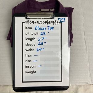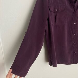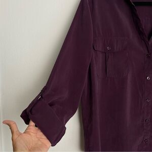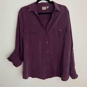Chico’s Plum Button Down Shirt Long Sleeve with Roll Tab Women’s Size Large