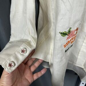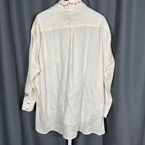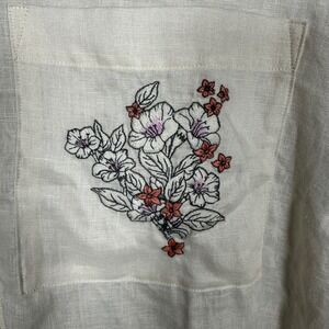 Agua Bendita Ete Swan Shirt 100% Linen Embroidered Cream M/L Cover Up Resort