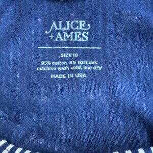 ALICE + AMES Floral Striped Ballet Dress Girls 10 Navy Blue Cream Twirl Dress