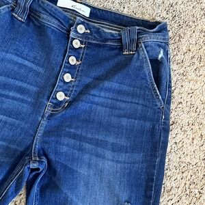 KANCAN Dark-Wash Mid-Rise Button-Fly Distressed Denim Jeans Women's 11/29