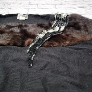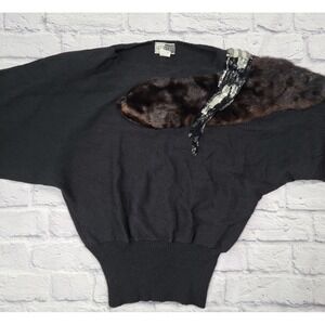 Vtg Kippsport Saks Fifth Avenue Designer Bat Wing Wool Black Sweater Sequins