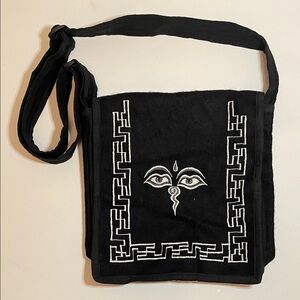 Black Buddha Eye Embroidery Crossbody Messenger Bag Goth Boho Indie Mystical Y2K