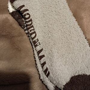2 PAIR pack of "MODERN MAN" socks that are infused with Bourbon and Shea Butter. These novelty slipper socks are known for being relaxing and therapeutic, and they feature a non-skid bottom. They are typically made from a polyester blend and often have a soft Sherpa lining for added warmth and comfort