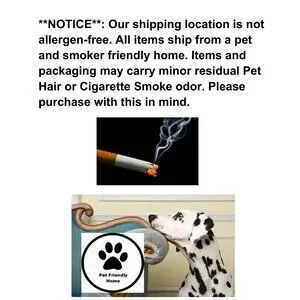 **NOTICE** Items ship from location not allergen-free. Items/Packaging may carry minor residual pet hair or cigarette smoke odor. Please purchase with this in mind.