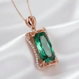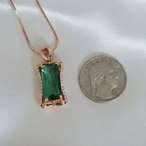 5 Carat Simulated Emerald CZ Pave Rose Gold Pendant Necklace NWOT