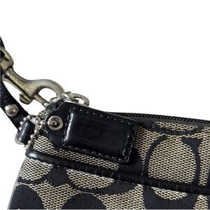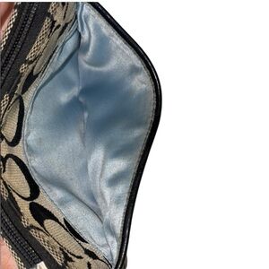 Coach Signature Monogram Black and Tan Wristlet with Blue Interior