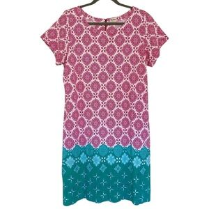 Hatley, Nellie, Cotton Short Sleeve Geometric Dress, Fuchsia Compass, Pink, Teal