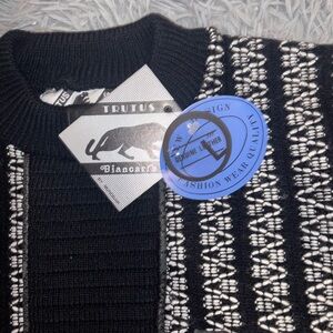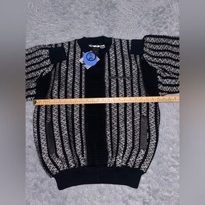 VTG Trutus Biancarra Sweater Men’s Large Leather Patchwork Knit Coogi Retro NEW