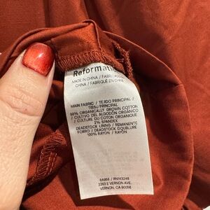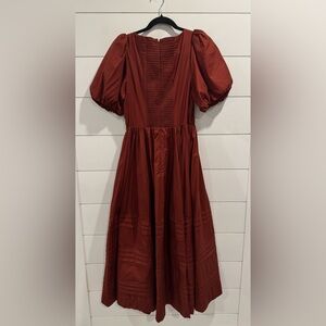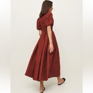 NWT Reformation Everlyn Puff Sleeve Stretch Organic Cotton Maxi Dress in rust