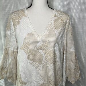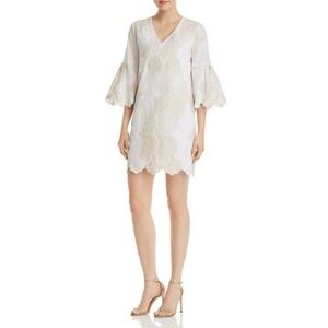 Le Gali Albany Dress Embroidered Scalloped Sleeves V-Neck Size Medium