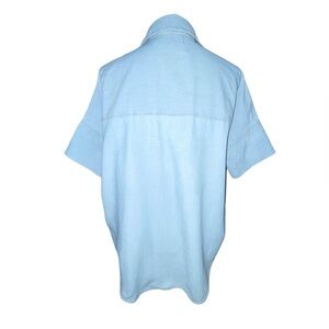 We remade our perfectly oversized, slightly boxy shirt in indigo denim embroidered with metallic dots. This beloved short-sleeve button-down is effortlessly cool—and so very versatile.