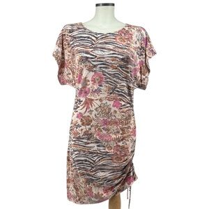 Brand new with tags! Pull on style. Soft and stretchy material. Ruching and side slit on left side. Zebra and floral print. From a smoke free, pet free home. No trades, please.