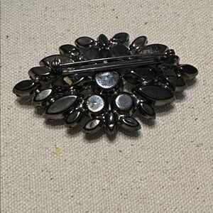 This stunning brooch features a captivating array of blue crystals, perfect for adding a touch of elegance to any outfit.