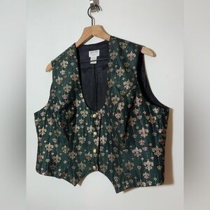 Hobby Horse Womens Equestrian Button Vest Vintage Sz Plus USA Green Gold