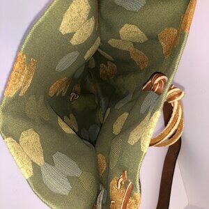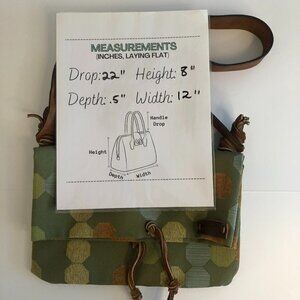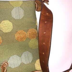 Shoulder Handbag Green Fabric Geometric Design Fold Over Leather Strap Crossbody