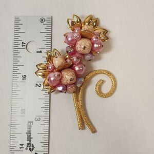 Vintage Brooch Faux Pearl and Gold Tone Pink Beads Irridescent Purple 3.5 inch