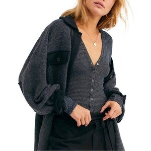 NEW Free People Keep Your Cool Waffle-Knit Bodysuit. Charcoal Gray. Size Small.