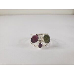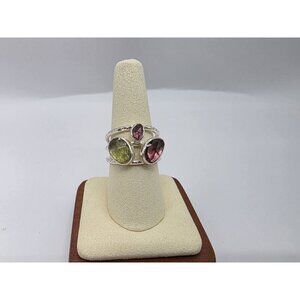 Tourmaline Pink Green Natural Stones Sterling Silver 925 Ring Womens Size 9 NEW