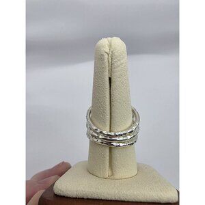 The band seems like it is 3 0.3 mm bands that were soldered together at the palm side of the ring. The narrowest part of the ring at the palm side is 4.1 mm and the top side of the ring at the widest is 13.2 mm.