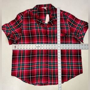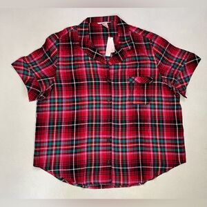 Victoria's Secret Plaid Button Sleepwear Top Women XL Red Short Sleeve NWT