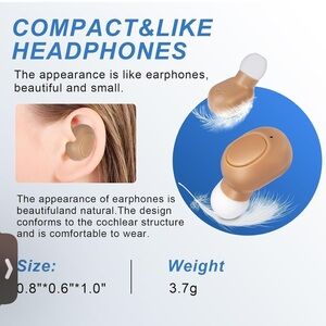 * Comfortable & Invisible: The OTC hearing aids feature a nearly invisible design for confident wear. Compact and lightweight, they provide ultimate comfort with ergonomic principles and soft materials