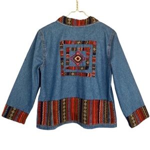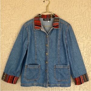 Christina Hope Vintage Aztec Embroidered Denim Shacket Jacket Size 12