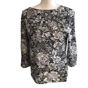 Coldwater Creek Black White Knit Top Size Medium NWT