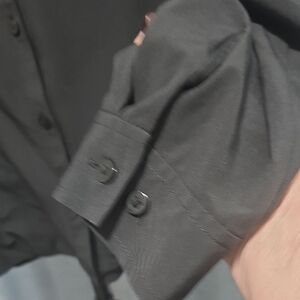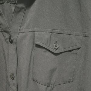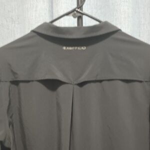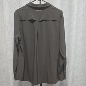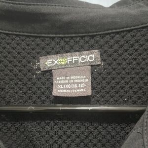 Black button down vented shirt with mesh lining at neck. Hiking blouse for ladies. One side pocket. Great condition. Features Exofficio branding. XL Size.