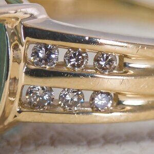 14K Yellow Gold Oval Blue Topaz & Diamond Ring Size 8.25