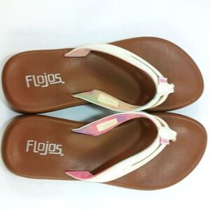 NWOT Flojos Flip Flop Thong Sandal Womans 8. Tan And White/Pink Strap...........