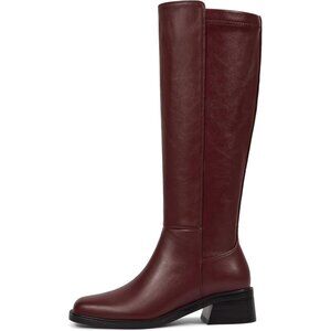 [Easy On & Off]: These women's burgundy knee-high boots have a side zipper for easy on and off, a soft faux leather upper with knit lining for all-day comfort, and a rubber non-slip sole to keep you steady on your feet