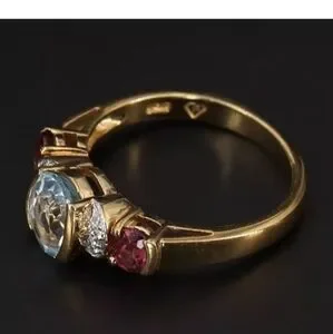 This listing is for this vintage sterling silver Fessenden &co. topaz white CZ and Garnet Gold ring, sz. 7.5