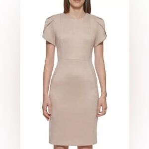 NWOT Calvin Klein Faux-Suede Tulip Sleeve Sheath Dress Light Pink Size 8 Bodycon.
