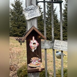 Enhance your garden or home decor with this charming ceramic wall-mounted bird feeder. Featuring a delightful floral design, this set includes a white and green color scheme that adds a touch of elegance to any space. Perfect for coffee lovers and home decor enthusiasts.