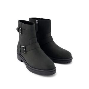 The Ionie boot is both edgy and stylish with black Nubuck leather uppers and a moto-inspired silhouette. Buckle straps with sleek hardware and a medial zipper ensure easy entry. Complete with CloudBound™ insoles for all-day support.