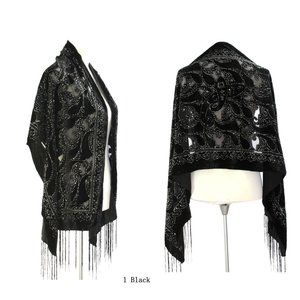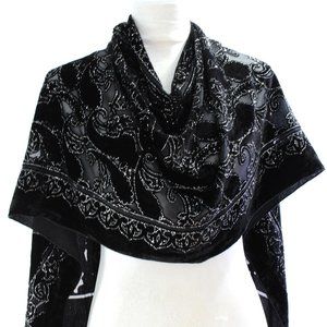 Black Silk Burnout Velvet Long Shawl Wrap Scarf