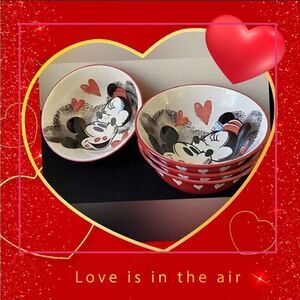 New Set of 4 Disney Mickey & Minnie Mouse Valentine’s Day Hearts Love & Kisses Tidbit Bowls 6"
