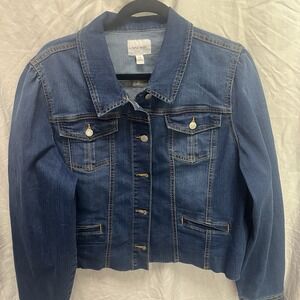 Nine West Women's Jean Jacket Blue Denim Button Front Cropped Size 2XL Raw Edge