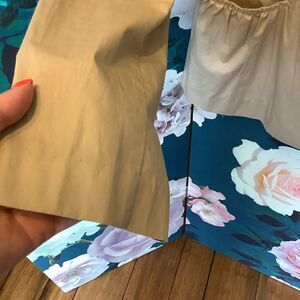 Lightweight, cotton, jacket in golden wheat color. Buttons up. Shawl collar with gathered back waist and flutter back hem accent. Very nice summer into fall jacket. Size large.