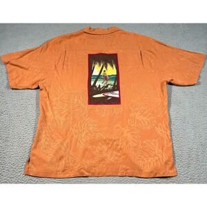 Reyn Spooner M.Field Shirt Men Large Orange Silk Button Up Hawaiian Surfer Print