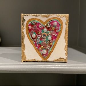 🔴HOLD FOR BELLAM247🔴Add a touch of whimsy to your home with this vibrant heart canvas art. Featuring a mix of pink, gold, and turquoise hues, this piece is perfect for brightening any space. Enhanced with stones and glitter that make it sparkle in the light!