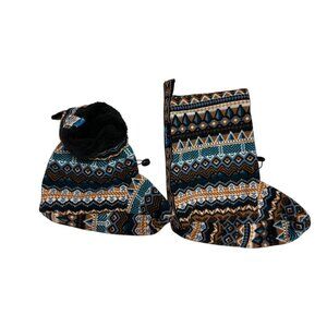 Kavu Cabin Toes Aztec-Patterned Fleece Booties Slipper Socks With Adjustable Toggle & Loop Hanger Size Medium