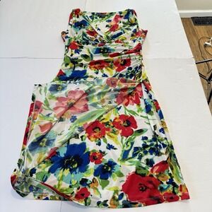 Ralph Lauren Colorful Floral Faux Wrap Stretch Sleeveless Sheath Dress Size 6