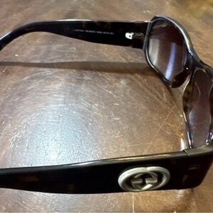 Stylish Gucci sunglasses with a tortoiseshell frame. Features iconic logo on the side. Perfect for a chic look.