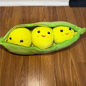 Disney Store Pixar Toy Story 3 Peas-in-a-Pod plush toy. Includes a full-length zipper and contains three removable plush peas; Peatey, Peatrice, and Peanelope