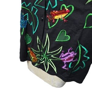 Michael Simon Sequin Frog Cardigan Sweater Black Knit Button Down Size L