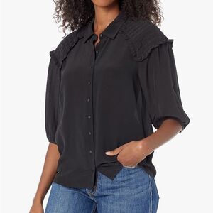 Joie Black Quilted Shoulder Women's 100% silk Top size M, NWT