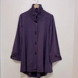 Boutique style button down. NWOT spare button attached see photo. This is a small but for the taller person who loves a statement piece, pockets in the front details in the back high low.. beautiful piece. Chest measurements are 17 inches wide PTP and 36 inches long. Better in person