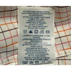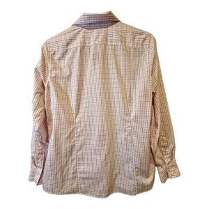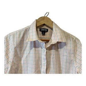 Lands’ End Top Blouse Long Sleeve Women’s Check White Orange Pink Black Career O