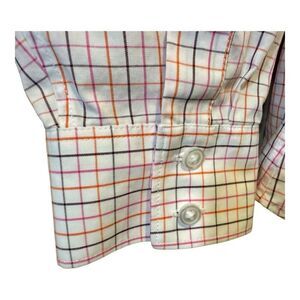Lands’ End Top Blouse Long Sleeve Women’s Check White Orange Pink Black 14